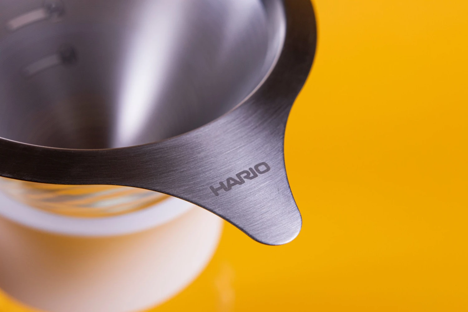 For those who are looking for a little coffee with a full body. The stainless steel filter is micro perforated and allows fine coffee particles to pass through, making a coffee with a rich texture. The white silicone band adds grip and protects your hand from the heat of your coffee. This dripper is reusable and easy to clean. No need to resupply on paper filters. The metal filter is also compatible with any 02 V60 Dripper.