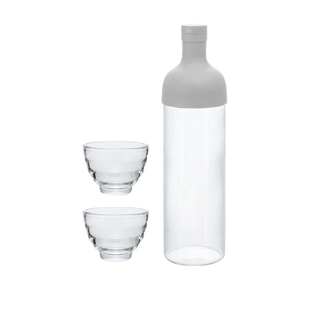 Hario Filter in Bottle and Tea Glass Set (Pale Grey)