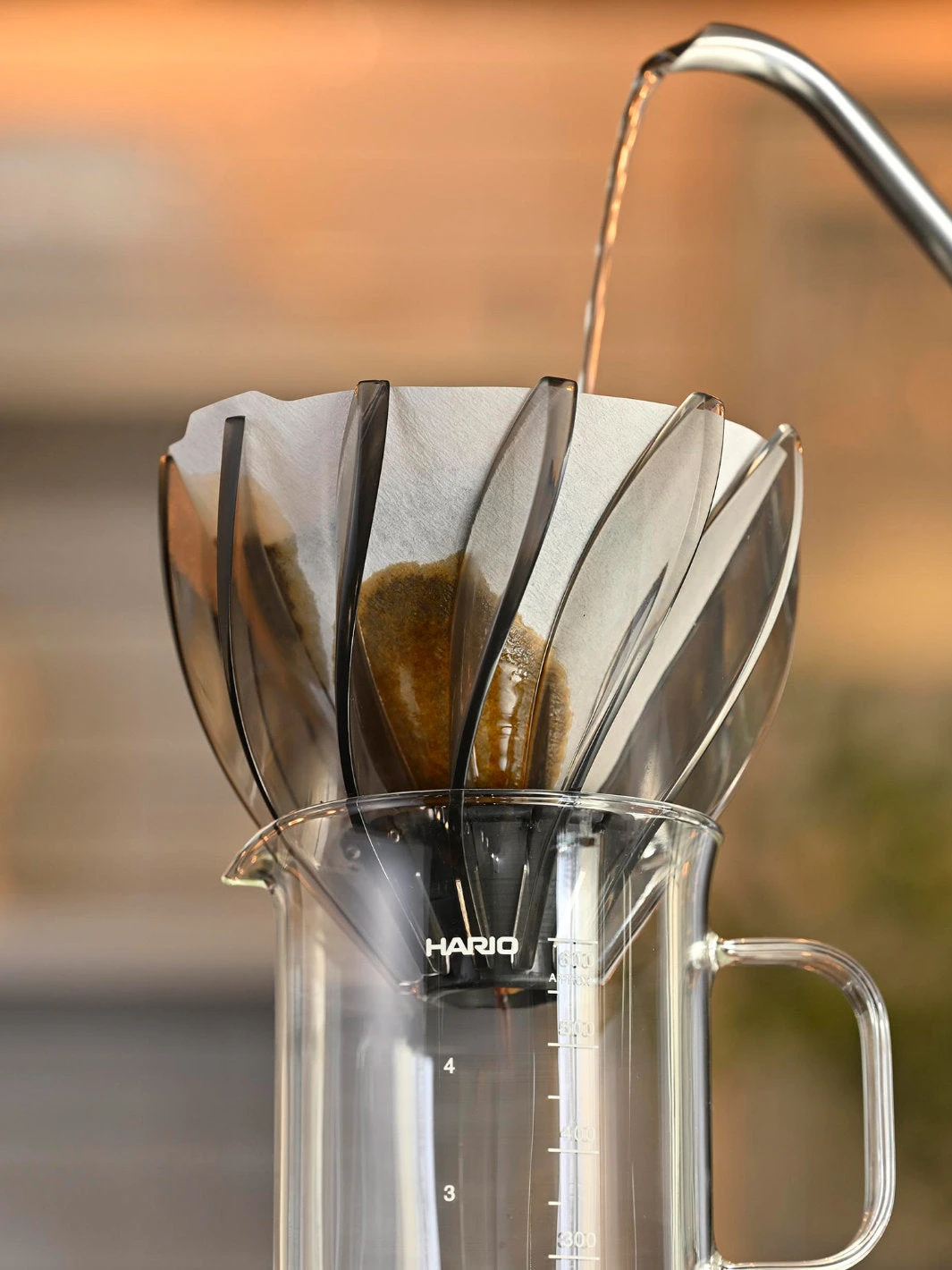 Designed to work seamlessly with V60 filters, ensuring a balanced and flavourful brew.Elevate your coffee ritual with the HARIO Suiren Dripper, where innovation meets craftsmanship.