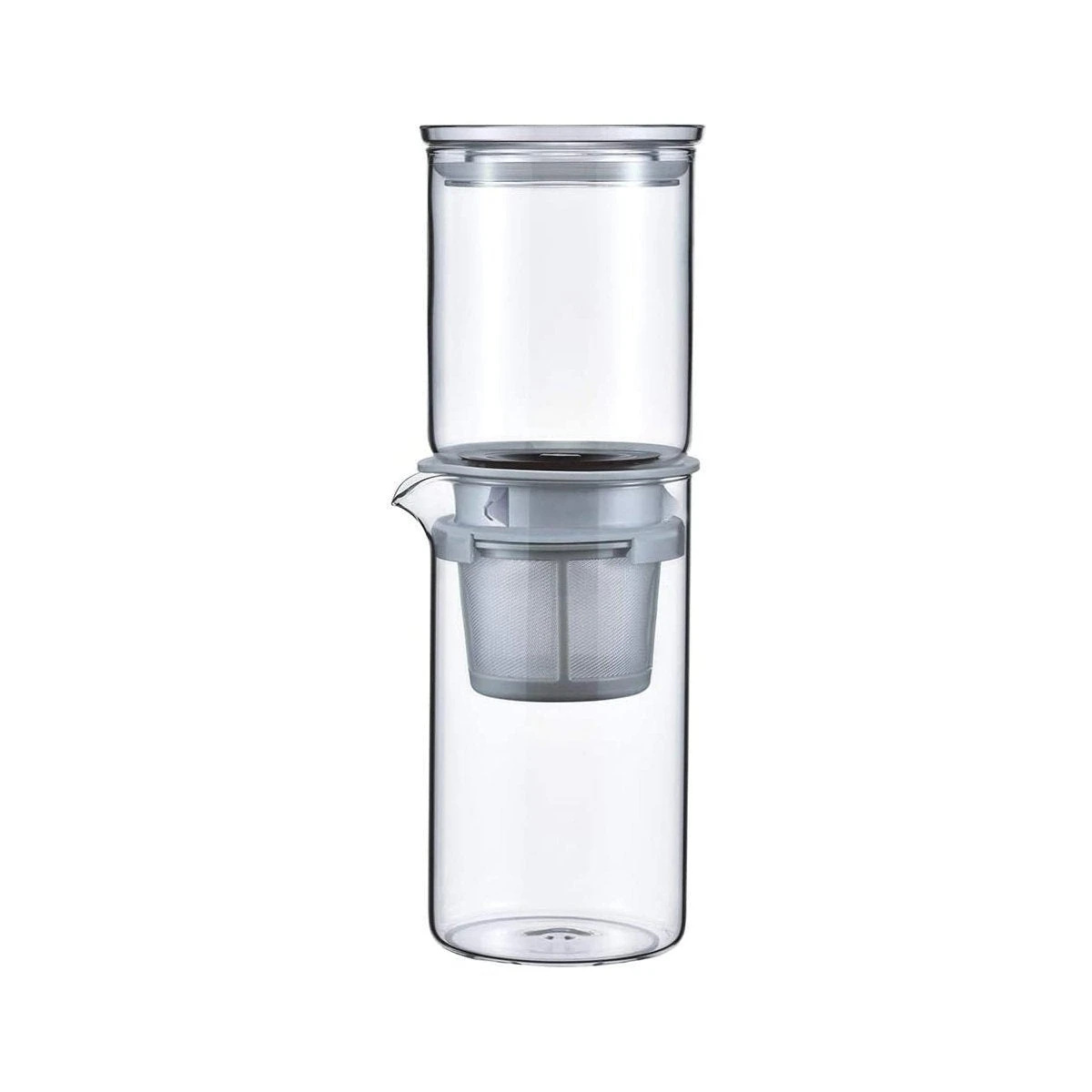 - Materials: Lid, Upper bowl: Acrylonitrile-Styrene resin | Packing, Inner Holder, Strainer holder: Silicone rubber | Drip part, Strainer: Polypropylene | Lower bowl: Heatproof glass