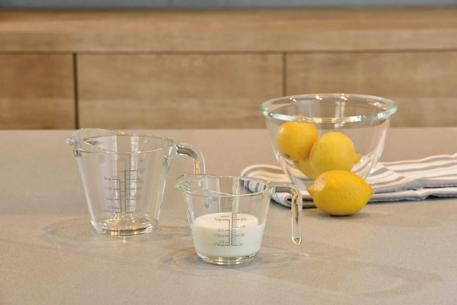 This perfectly handy measuring cup features a thick glass design. The handle makes it easy to hold and pour. The measurements are printed on both the inside and outside of the cup for easy viewing.